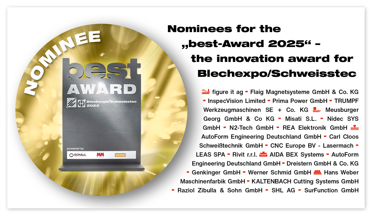 - Exclusive visibility: winners and finalists will be prominently presented as part of the international trade fair duo Blechexpo/Schweisstec 2025.